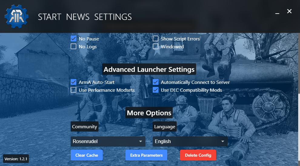 Clears the internal ArmA Mod and Image Cache of the Launcher and restarts it.